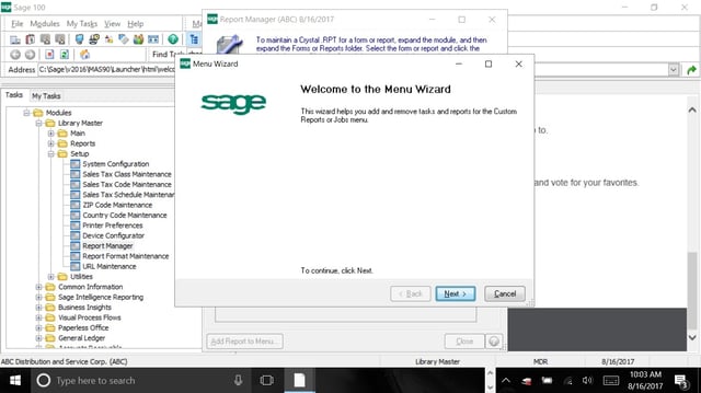 Sage 100 Cloud: How to Easily Access Crystal Reports in the Menu and set-up Security Rights.